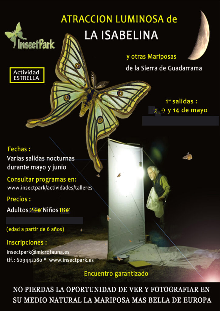 Aprovechando que las temperaturas comienzan a subir, podemos garantizar el avistamiento de ejemplares de mariposas nocturnas. No pierdas la oportunidad de ver y fotografiar a la mariposa más bella de Europa en su medio natural. Encuentro asegurado con el equipo de InsectPark.
